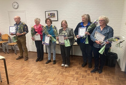 V.l.n.r.: Peter Brijder, Truus Woldberg, Cobie Borg, Alie Brink, Hennie Potjes en Nienke Hielkema